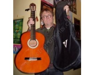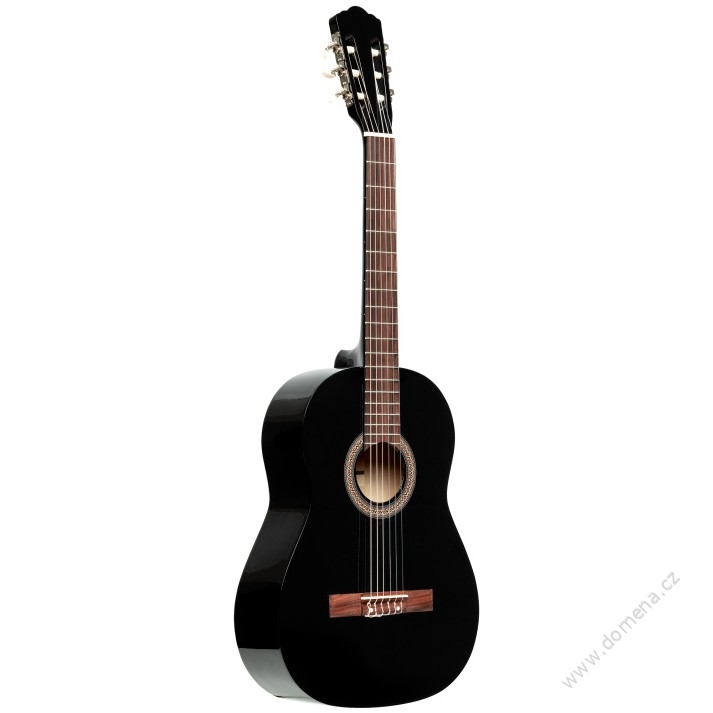 Klasická 4/4 kytara. Vrchní deska, spodní deska a luby lípa, krk s kovovou výztuhou, hmatník a kobylka pau ferro, mechanika klasická, niklovaná. Barva černá, povrchová úprava lesklý lak. Nylonové pouzdro s uchem a dvěma popruhy, klipová chromatická ladička.