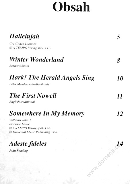 A4, sešit, 27 s.|n||n|Vánoční písně pro kvartet příčných fléten přináší poutavé zpracování 6 známých světových vánočních koled od těch klasických až po ty moderní. Publikace obsahuje partituru i party.
