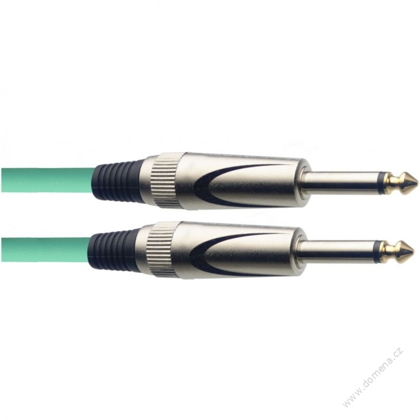 Standardní nástrojový kabel jack/jack, de luxe, délka 3 m, průměr 6 mm. Barva zelená.