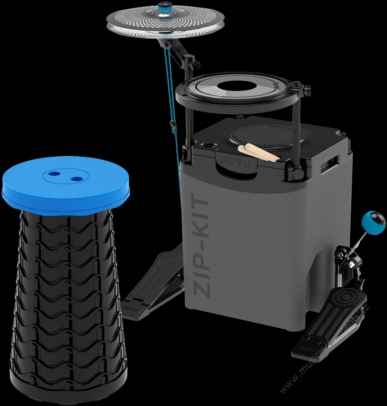 Úsporná a kompaktní bicí sada. Lze rychle rozložit i složit do jedné bedny s popruhy na záda. Cena je orientační.