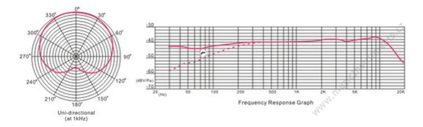 • Citlivost: -40 dB ± 3 dB (0 dB = 1V / Pa na 1 kHz)