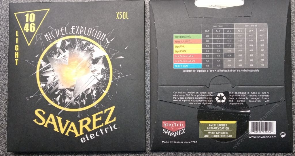 Síla .011-.049, hexagonální jádro, kulaté vinutí-nikl. Opředená struna g.