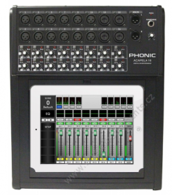| 16 vstupý digitální mixážní pult pro živé hraní s bezdrátovým ovládáním Phonic představuje nový standard v digitální mixáži. Acapela 16 kombinuje ověřené a vyzkoušené vlastnosti z předešlých řad digitálních mixážních pultů Phonic společně se zcela novou úrovní bezdrátové kontroly a způsobu ovládání, jaký nebyl dosud viděn u tohoto druhu mixážních pultů. Držák tabletu fixuje displej pro snadnou kontrolu parametrů a WiFi spojení umožňuje být připojen všude, kde je dosah sítě. Mixpult dále umožňuje pokročilou kontrolu parametrů, dostupnou skrze grafické rozhraní, zobrazitelnou na jakémkoliv připojeném monitoru a ovladatelnou skrze počítačovou myš. Acapela 16 je kompatibilní s Apple iPad a díky velkému zájmu uživatelů i s tablety s operačním systémem Android - aplikace jsou ke stažení na AppStore a GooglePlay. Vlastnosti: