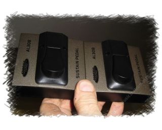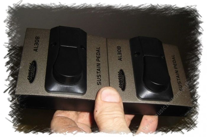 Připojení kabelem s jacky 6,3 mm (není součástí balení). Pedály je možné řetězit do lišty.